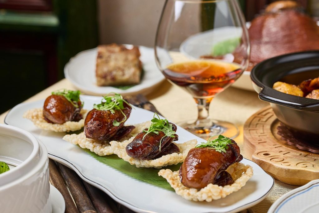 Executive Chinese Chef Chan Hon-cheong, a native of Macau, has partnered with Long Tin, a well-established cured meat brand based in the Red Market in Macau for over half a century. Together, we have curated a tasting menu featuring high-quality preserved sausages that showcase traditional flavours with innovative recipes.