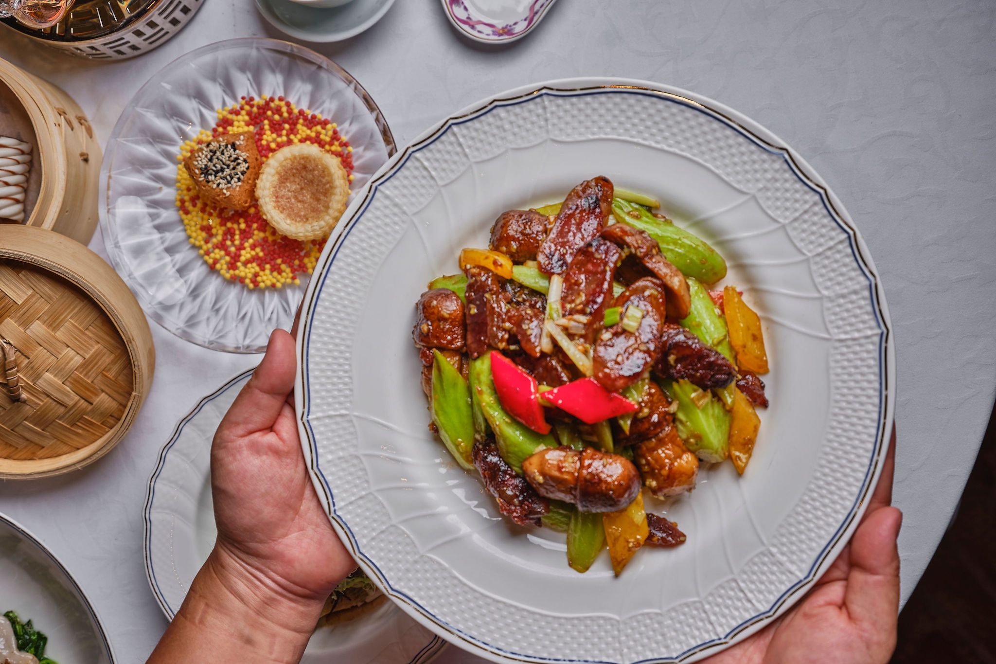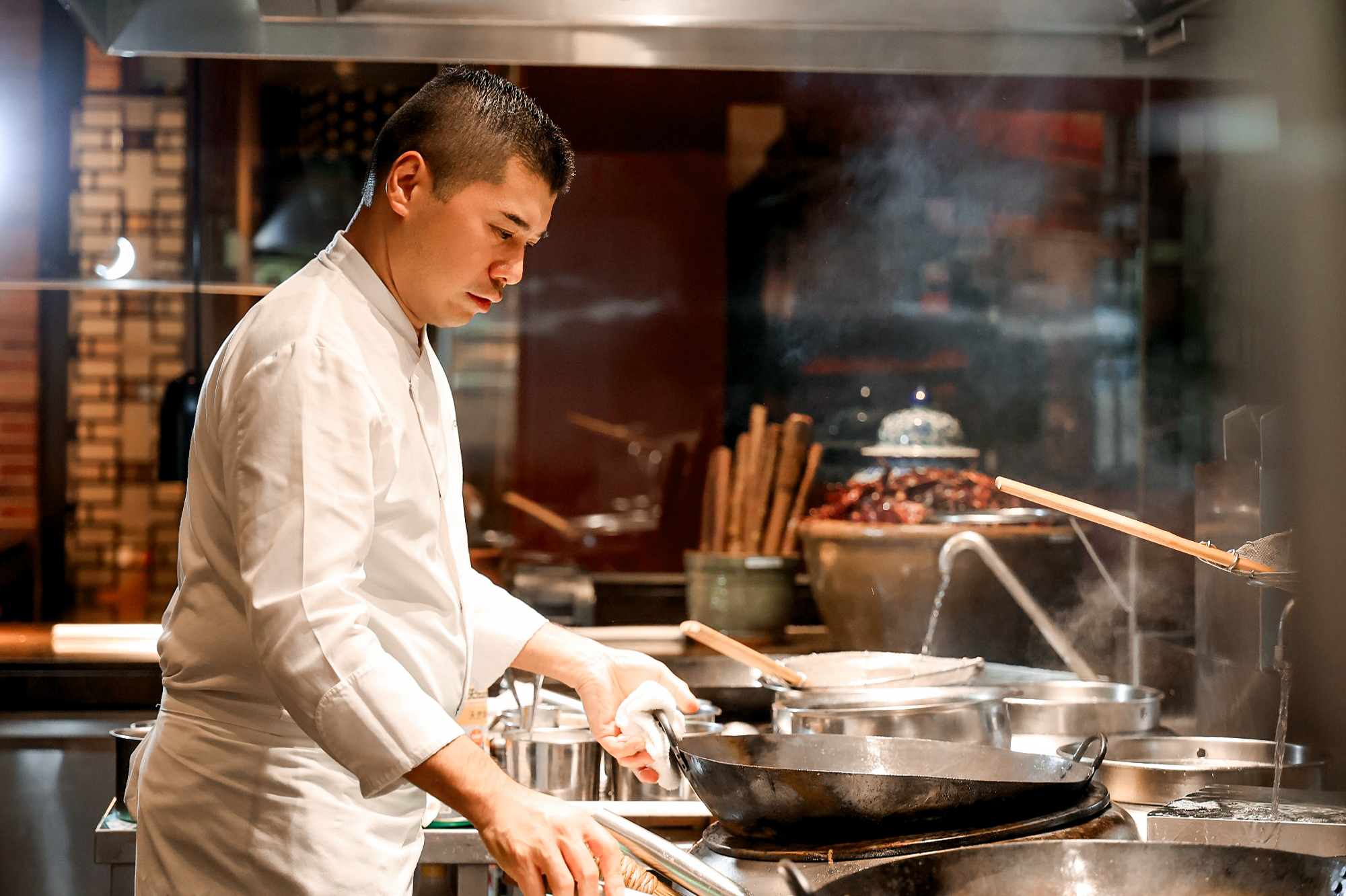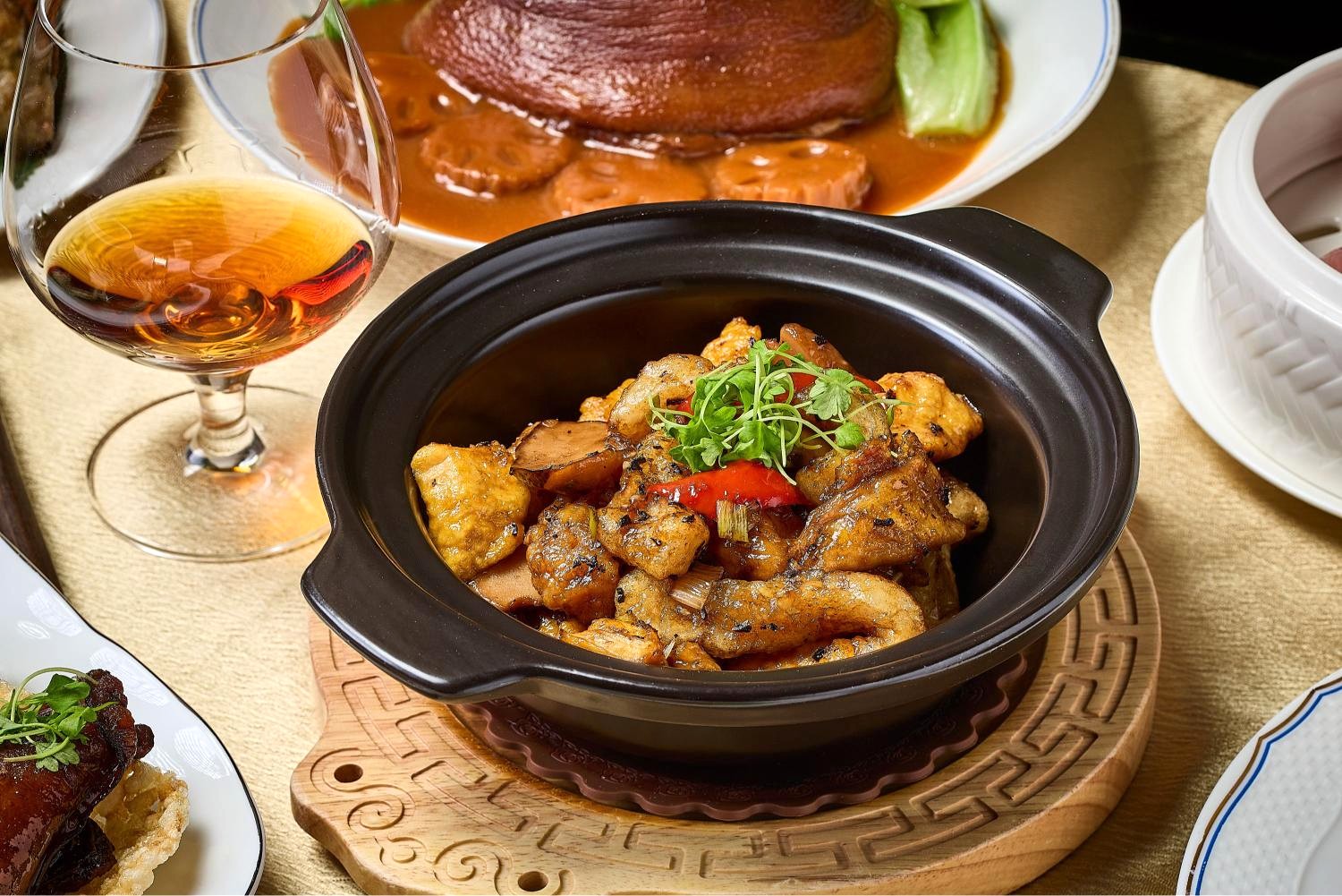 The plush sofa and armchairs, dark antique wood furniture by the window and period fireplace create a warm and cosy home feeling that matches the restaurant’s traditional homestyle cuisine. Chef’s Table offers a unique dining experience where guests enjoy a rare glimpse into highly orchestrated workings while passing through the Wok, Dim Sum and Roast sections.